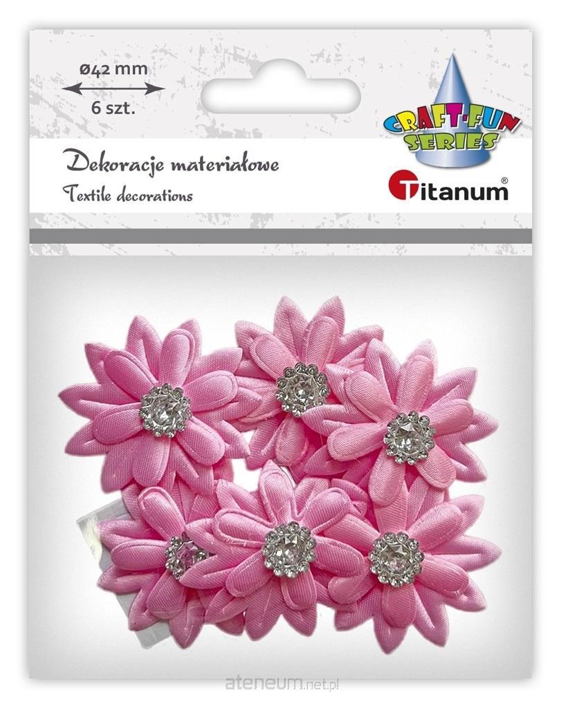 Dekoracje samoprzylepne materiałowe 3D kwiaty O42mm różowe z ozdobnym ćwiekiem 6szt.