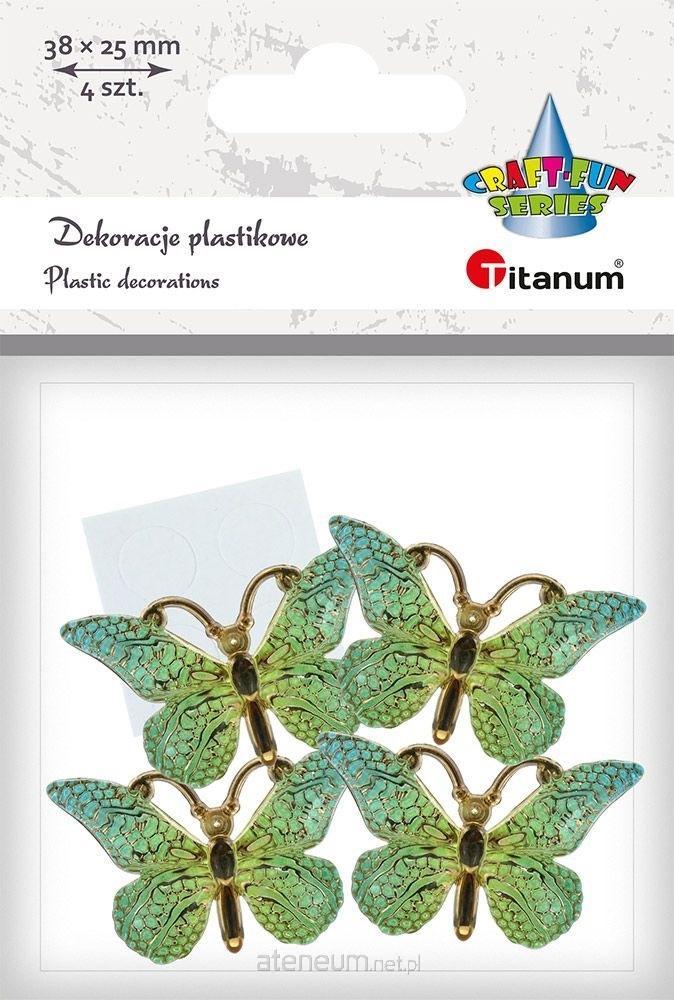 Dekoracje samoprzylepne plastikowe motyle 38x23mm zielono-złote 4szt.
