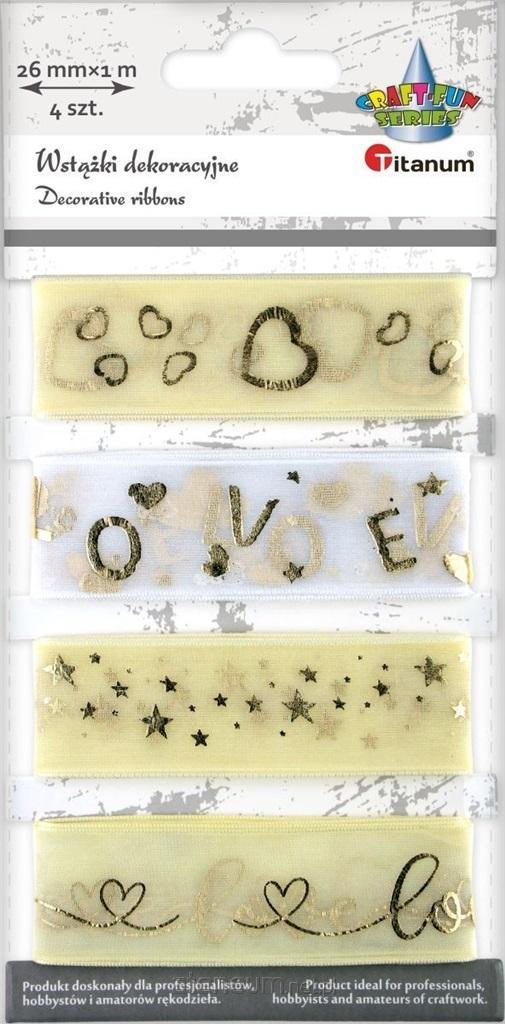 Wstążki z organzy 26mm ze złotym nadrukiem 2 kolory 4 wzory x1m