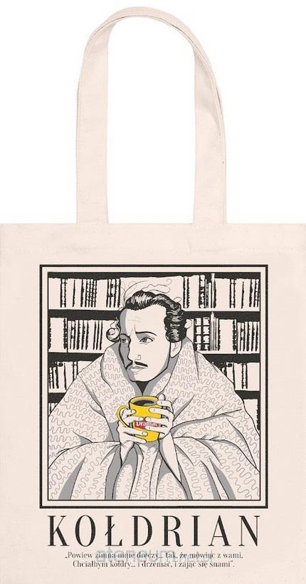 Łóżko, kołdra, kubek z gorącą herbatą. Jeśli te 3 punkty są dla Ciebie definicją szczęścia/ stanu idealnego, jesteś Kołdrianem. "Dramatu nie ma" - rzekłby zapewne Słowacki. Torba na książki KOŁDRIAN z dwustronnym nadrukiem to idealny pomysł na prezent dla mola książkowego i fana twórczości Juliusza Słowackiego. Niezbędny element garderoby studenta polonistyki, nauczyciela, licealisty z klasy o profilu humanistycznym i bibliotekarza! Bawełniana torba z nadrukiem KOŁDRIAN stworzona od A do Ż w Polsce zachwyci niejednego polonistę! Podaruj ją swojemu ulubionemu belfrowi jako prezent na Dzień Nauczyciela. Torba na książki o wymiarach 24 cm x 29 cm. Gramatura 280 g/m Nadruk dwustronny wykonany metodą sitodruku (wysokiej jakości, bardzo trwały) 100% bawełna, torba ekologiczna Elegancka metka boczna Wymiary: 24 cm x 29 cm Prać w niskiej temperaturze, prasować na lewej stronie, nie czyścić chemicznie