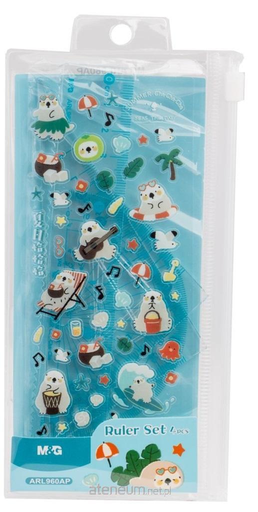 4 elementy: linijka 15 cm, 2 ekierki, kątomierz