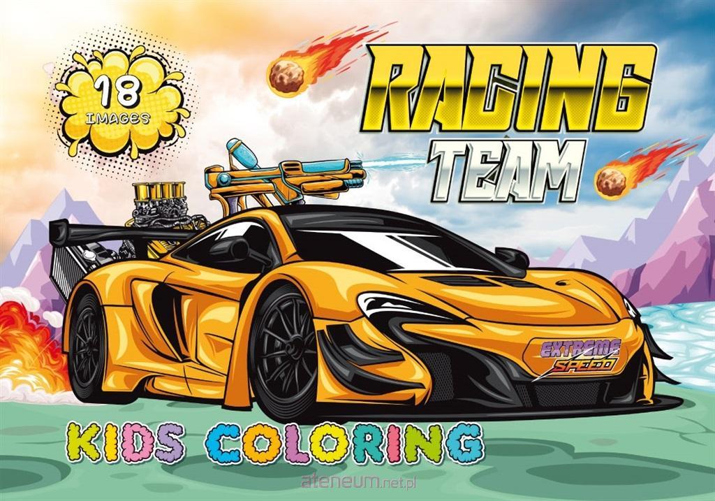 Kolorowanka dla dzieci. Na każdym z 18 obrazków znajduje się obrazek z monster truckiem, który tylko czeka żeby nabrać kolorów. Wyprodukowana na Ukrainie.
