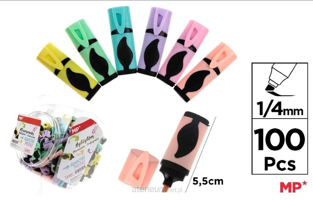 Mini marker z plastikowym korpusem i kolorowym wieczkiemz klipsem. Idealny rozmiar do zabrania wszędzie: tylko 55 mm. Atrament o wysokiej jasności i fluorescencji, stworzony do podkreślania ważnych tekstów. Tusz na bazie wody. Bardzo wytrzymała końcówka o dwóch szerokościach linii: 2 i 5 mm. Pudełko ekspozycyjne na 100 różnych pastelowych kolorów.