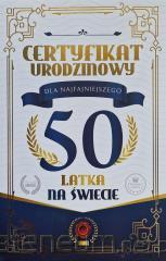 Karnet Certyfikat Urodzinowy 50 urodziny męskie