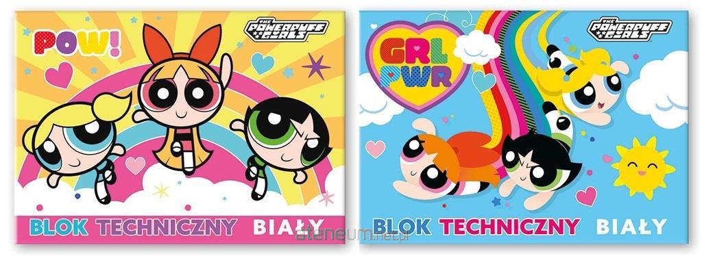 Blok techniczny zawiera 10 białych offsetowych kartek. Okładka kredowa z motywem Atmomówek. Całość usztywniona tekturowym podkładem.