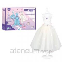 Zestaw do projektowania sukienek W zestawie kawałki materiałów, 2 manekiny, nici, nożyczki, kredki, kokardki, taśma, dżety, wykrojniki Wymiary opakowania: 40.5x6.6x31 cm