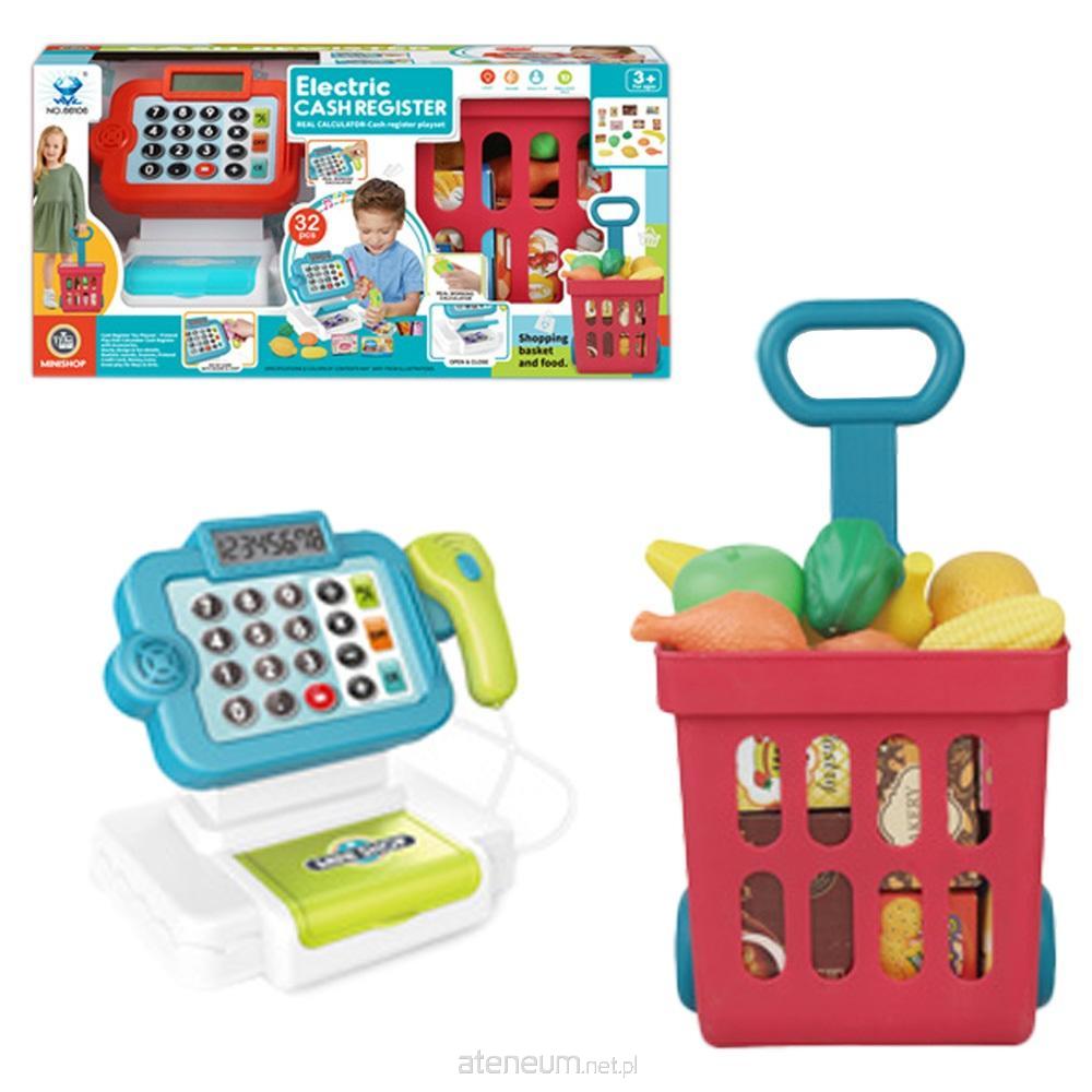 Kasa sklepowa z koszykiem na zakupy 32 elem. Kalkulator, koszyk z zakupami, płatność kartą z dźwiękiem i efektami świetlnymi, czytnik z dźwiękiem, 2 kolory kasy Zasilanie: 2xAA (brak w zestawie) Wymiary opakowania: 42.5 x 14.5 x 21 cm