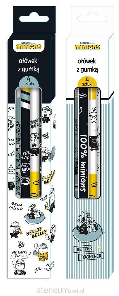 Ołówki drewniane z gumką Minionki. Na blistrze 4 szt.