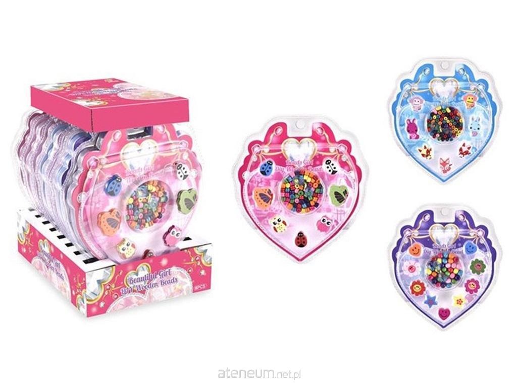 W zestawie kolorowe figurki do nawlekania. Pakowane po 8 szt w displayu.