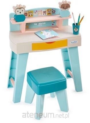 Zestaw biurko i stołek w stonowanych kolorach. 8 elementów w tym klocki do zbudowanie 2 figurek oraz kolorowanka. Wyprodukowane we Francji. 12 m+