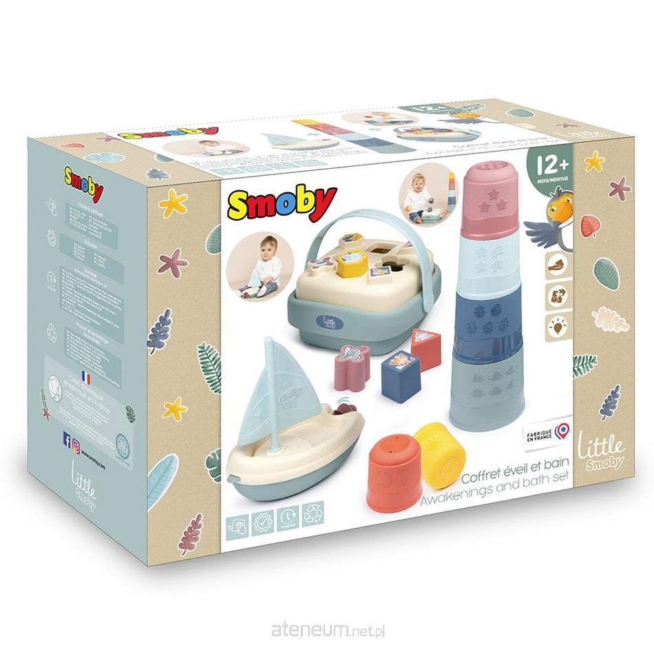 Zestaw do zabawy i kąpieli składa się z wieży, sortera z klockami i łódki. Wieża z 6 kubkami do układania, sorter kształtów składający się z 8 form (kwadratów, trójkątów, sześciokątów) w tym 4 klocków do wkładania lub układania. Łódka z żaglem. Idealny do zabawy zarówno podczas kąpieli, jak i w pokoju. Wyprodukowane we Francji.