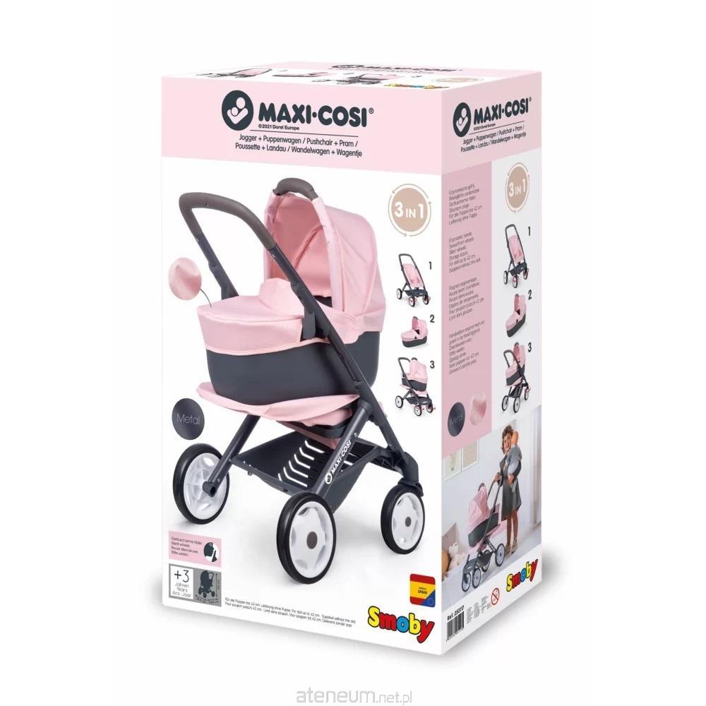 Wielofunkcyjny wózek 3w1: gondola, spacerówka i wózek głęboki. Łatwy montaż, oryginalne wzornictwo Maxi Cosi. Metalowa konstrukcja, gumowe, skrętne przednie koła, ergonomiczne uchwyty, koszyk na drobiazgi. Dla lalek do 42 cm (lalki brak w zestawie). Rączka na wysokości 64 cm.
