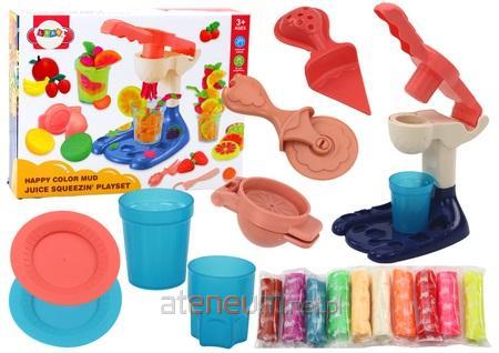 Ciastolina Owoce DIY Masa Plastyczna Zestaw Akcesoria To innowacyjna zabawka, która zagwarantuje twojemu dziecku niezwykłą zabawę z masą plastyczną. Za jej pomocą dziecko będzie mogło wyciskać wzory według własnego pomysłu. W zestawie znajdziesz maszynę do soków w raz z różnymi akcesoriami m.in podstawką, nakładkami, nożykami oraz tubkami z ciastoliną w różnych kolorach. Na podstawce wybite są różne kształty - dzięki nim można ulepić np. owoce z masy plastycznej. Za pomocą naszego wyciskacza do soków dziecko może wycisnąć kolorowe imitacje soków. W zestawie znajdują się wypustki co pozwala na tworzenie owoców w różnych kształtach. Dodatkowo masa plastyczna również znajduje się w różnych kolorach, dzięki temu dziecko może stworzyć różne wersje imitacji soków. Do zestawu dołączone są również akcesoria przez co twoje dziecko stanie się będzie mogło dowolnie tworzyć wzory. Urządzenie posiada podstawkę, na której wybite są różne kształty m.in owoce, dodatkowo w zestawie znajdują się 4 akcesoria do modelowania m.in nożyk czy łopatka, dzięki temu twoje dziecko ma szanse stworzyć większą ilość kształtów z masy plastycznej. Zawartość zestawu: - urządzenie do wyciskania - dwa kubeczki - dwa talerzyki - nożyk, łopatka, widelczyk - 10 kolorów ciastoliny Wymiary urządzenia do wyciskania: 11 cm x 16 cm x 15 cm Wymiary opakowania: 34 cm x 26 cm 8 cm Posiada certyfikat CE, ponadto jest zgodny z normą EN71. Zabawka przeznaczona jest dla dzieci powyżej 3 roku życia.