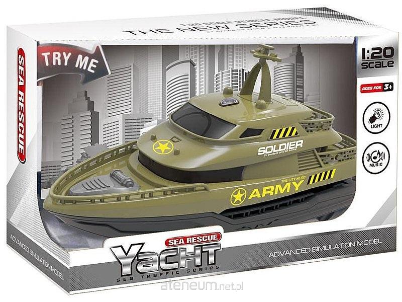 łódka 1:20, na baterie, jeździ, światło, muzyka; 22,5x14x9,5cm, W/B