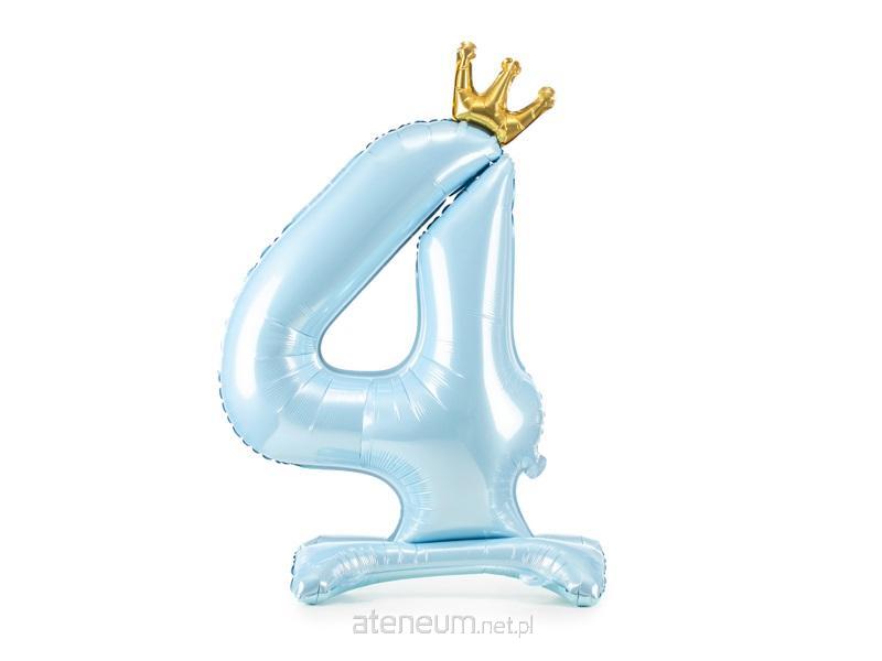 Stojący, metalizowany balon foliowy w kolorze błękitnym z koroną w kolorze złotym, rozmiar przed napompowaniem 103 cm (40.5''), rozmiar po napompowaniu 84 cm (33''). Do napompowania powietrzem.