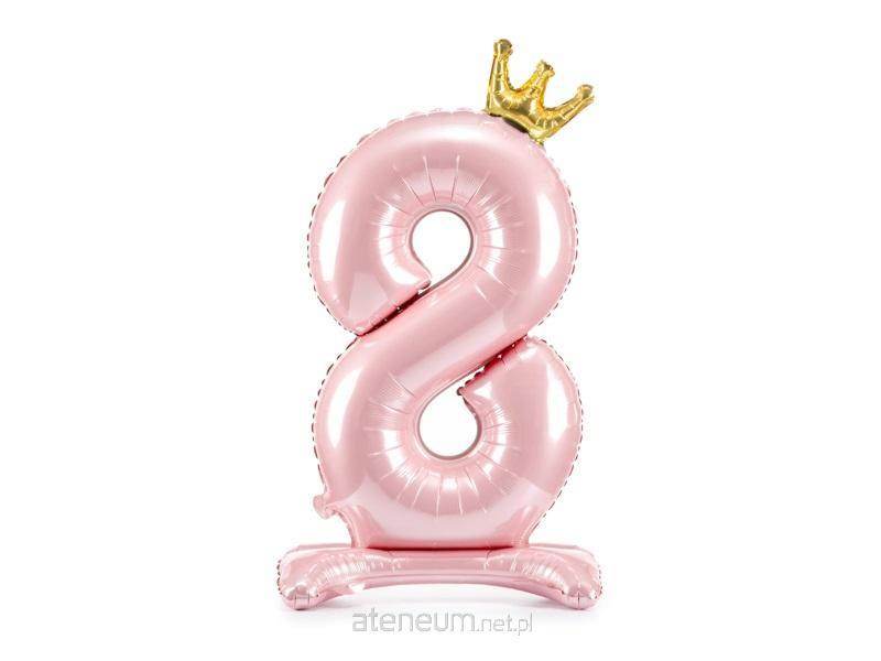 Stojący, metalizowany balon foliowy w kolorze jasnoróżowym z koroną w kolorze złotym, rozmiar przed napompowaniem 103 cm (40.5''), rozmiar po napompowaniu 84 cm (33''). Do napompowania powietrzem.