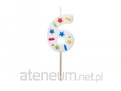 Świeczka urodzinowa 6 biała konfetti 5.5cm