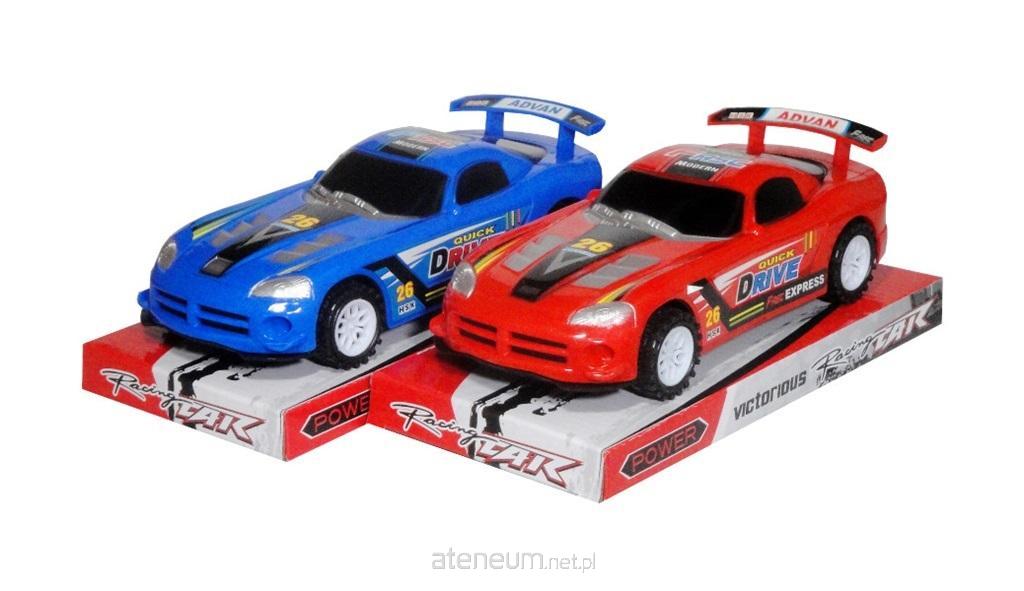 Samochód wyścigowy z napędem ciernym. Produkt zapakowany w kartonowa podstawkę z przezroczystym kloszem. Zabawak dla dzieci od 3 lat. Podane wymiary są wymiarami opakowania. Produkt występuje w kilku wersjach kolorystycznych, wybierany losowo. Cena dotyczy jednej sztuki.