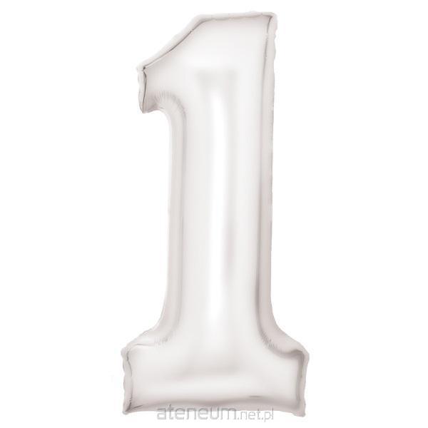 Balon foliowy cyfra 1 satynowy biały zapakowany 86 cm