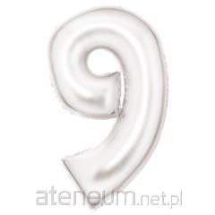 Balon foliowy cyfra 9 satynowa biała 86cm