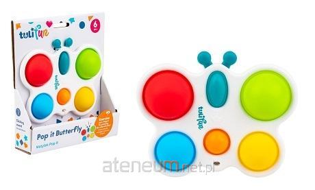 Wesoły motylek odpręży malucha zabawą w kolorowe klikanie! Ta zajmująca czynność stanowi świetną rozrywkę, która dodatkowo pomaga ćwiczyć paluszki. Motylek posiada jedno owalne i pięć okrągłych, kolorowych pól. Zadaniem najmłodszych jest przepchnąć wszystkie wypukłe elementy na drugą stronę zabawki. Czynności tej towarzyszyć będzie zabawny odgłos klikania. Po uporaniu się