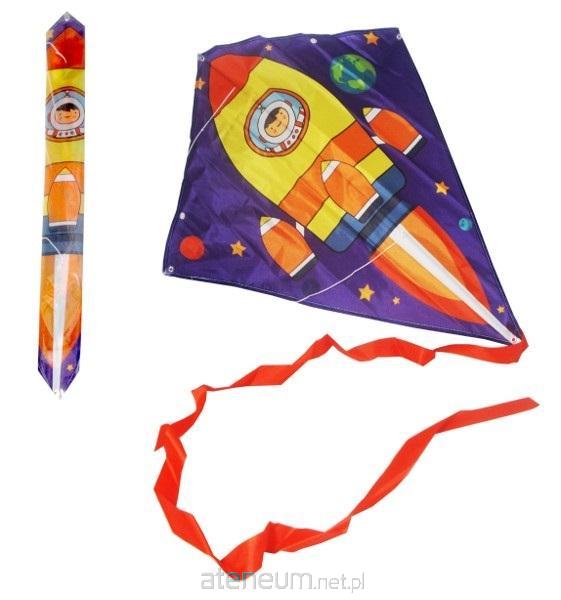 Kolorowy latawiec z wizerunkiem rakiety kosmicznej do puszczania podczas słonecznych, trochę wietrznych dni. Produkt zapakowany w przezroczysty worek. Produkt dla dzieci od 3 lat.