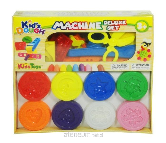 Zestaw masy plastycznej. W skład zestawu wchodzi 8 kubeczków z masą (8 różnych kolorów). Poza tym w zestawie znajdują się także foremki, wyciskarka, nożyczki, nożyki. Zestaw pozwoli ćwiczyć dzieciom ich małe zwinne paluszki, a także będzie rozwijał u dzieci wyobraźnię i kreatywność. Po zakończonej zabawie, ciastolinę należy chować do kubeczków, aby uniknąć jej wyschnięcia (a dalej kruszenia). Zabawka przeznaczona dla dzieci powyżej 3 lat.