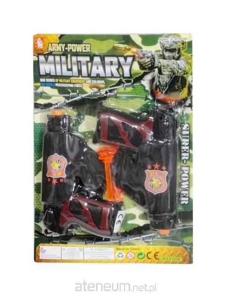 Zestaw 2 pistoletów w kaburze razem z 4 strzałkami. Pomoże dzieciom ćwiczyć celność. Produkt zapakownay w kartonową podstawkę z przezroczystym kloszem. Zabawka dla dzieci od 3 lat. Podane wymiary stanowią wymiar opakowania.
