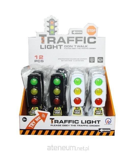 Plastikowy sygnalizator świetlny na baterie. Wydaje dźwięki i świeci kolorowym światełkiem. Produkt działa na baterie typu AG13. Baterie znajdują się w zabawce. Zabawka występuje w kilku wersjach kolorystycznych, wybierany losowo. Cena dotyczy jednej sztuki. Produkt dla dzieci od 3 lat. Podane wymiary sa wymiarami zabawki.