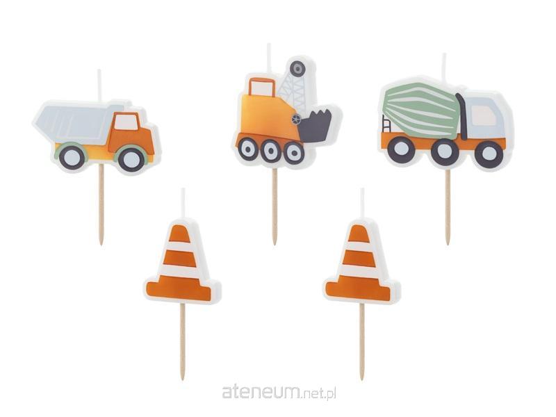 Świeczki urodzinowe Roboty Drogowe, mix kolorów i wzorów, wysokość ok. 3 - 4.5 cm.(1 op. / 5 szt.)