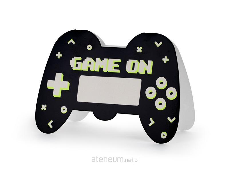Zaproszenia w kształcie Gamepada w kolorze czarnym z kolorowym nadrukiem, wymiary ok. 16 x 11.5 cm. Zestaw zawiera koperty.(1 op. / 6 szt.)