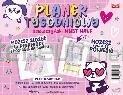 Planer składa się z trzech stron użytkowych, na każdej ze stron: Plan lekcji, Moje obowiazki i zajęcia dodatkowe, Lista ważnych dat do zaplanowania, wszystko w jednym miejscu.Format trójstronnej piramidki 160x210mm po sklejeniu do użytku w wersji stojącej, bez klejenia do użytku w wersji ściennej 160x516mm.
