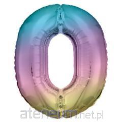 Balon foliowy cyfra 0 tęczowa pastel 70x86cm