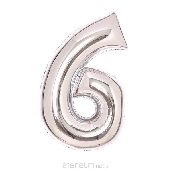 Balon foliowy cyfra 6 srebrna 46 cm x 66 cm