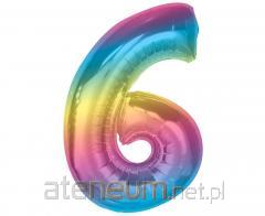 Balon foliowy cyfra 6 tęczowa Smart 92cm