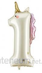 Balon foliowy Cyfra 1 Jednorożec 93cm