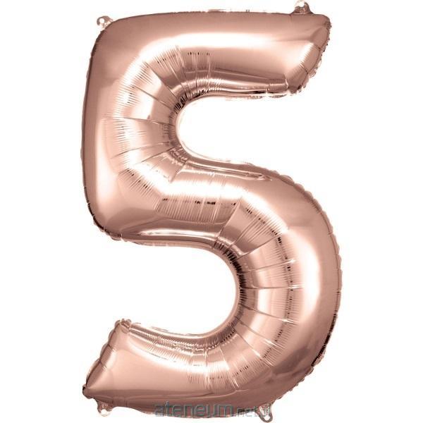 Balon foliowy cyfra 5 różowe złoto 57 cm x 86 cm