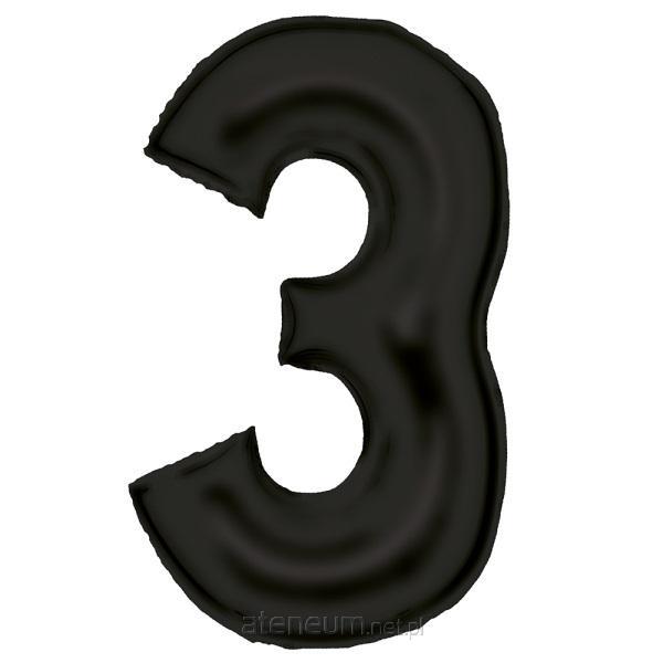 Balon foliowy cyfra 3 satynowa czarna 86 cm