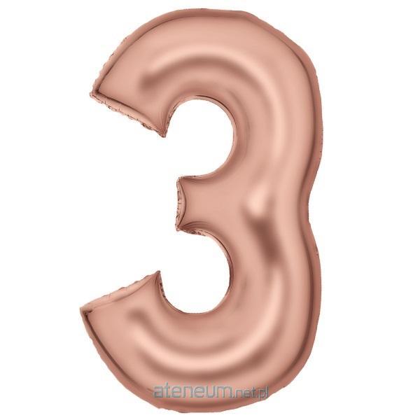 Balon foliowy cyfra 3 satynowa różowe złoto 86 cm