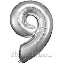 Balon foliowy cyfra 9 srebrna 60x86cm