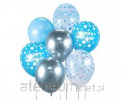 Balony B&C srebrno-niebieski Happy Birthday 7szt