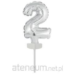 Balon foliowy mini cyfra 2 srebrna 8x12cm