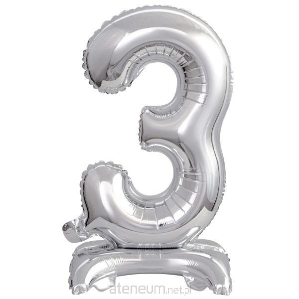 Mini cyfra 3 na stojaku srebrny balon foliowy zapakowany 22 cm x 40 cm