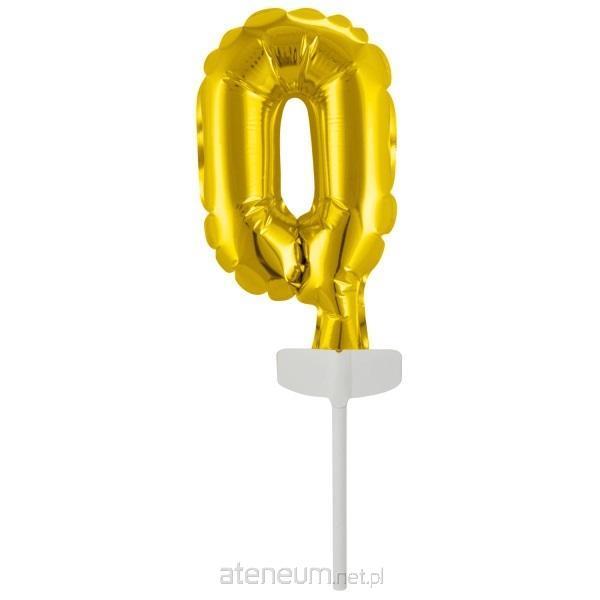 Balon foliowy mini cyfra 0 złota 7,5 cm x 12 cm