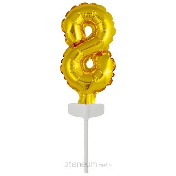 Balon foliowy mini cyfra 8 złota 6,5 cm x 12 cm
