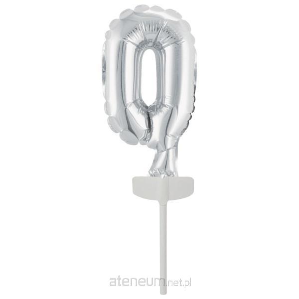 Balon foliowy mini cyfra 0 srebrna 7,5 cm x 12 cm