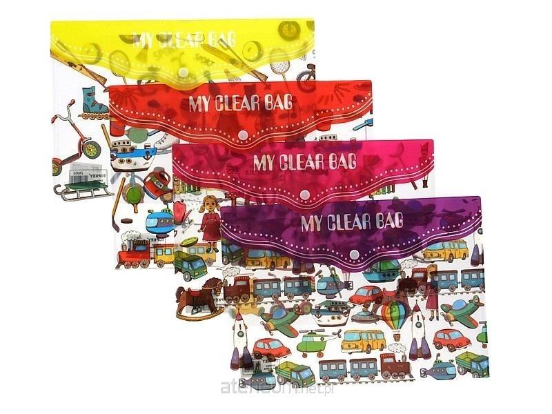 teczka plastikowa A4, zapinana nitem, przezroczysta, wzór zabawki, 33x23cm