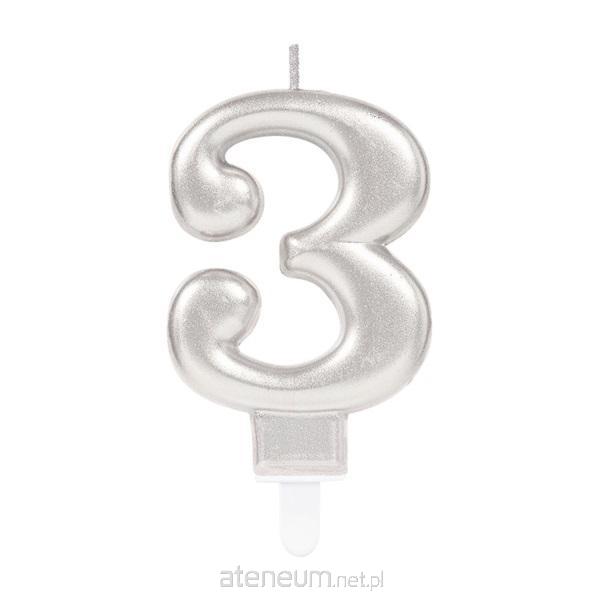 Świeczki cyferki 3 Sparkling Celebrations z uchwytem srebrna 9.3 cm