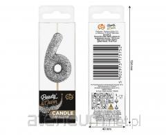 Świeczka cyferka 6 Sparkling Celebrations srebrna