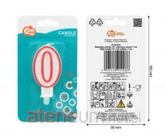 Świeczka 0 czerwony kontur 7cm